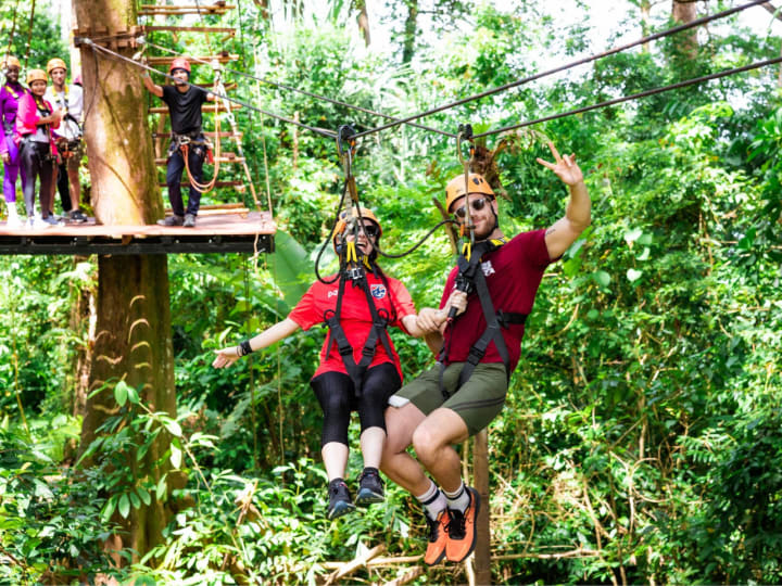 • Thrilling Zipline Adventures – Glide above the lush jungle on multiple ziplines, including dual ziplines for racing friends or family.